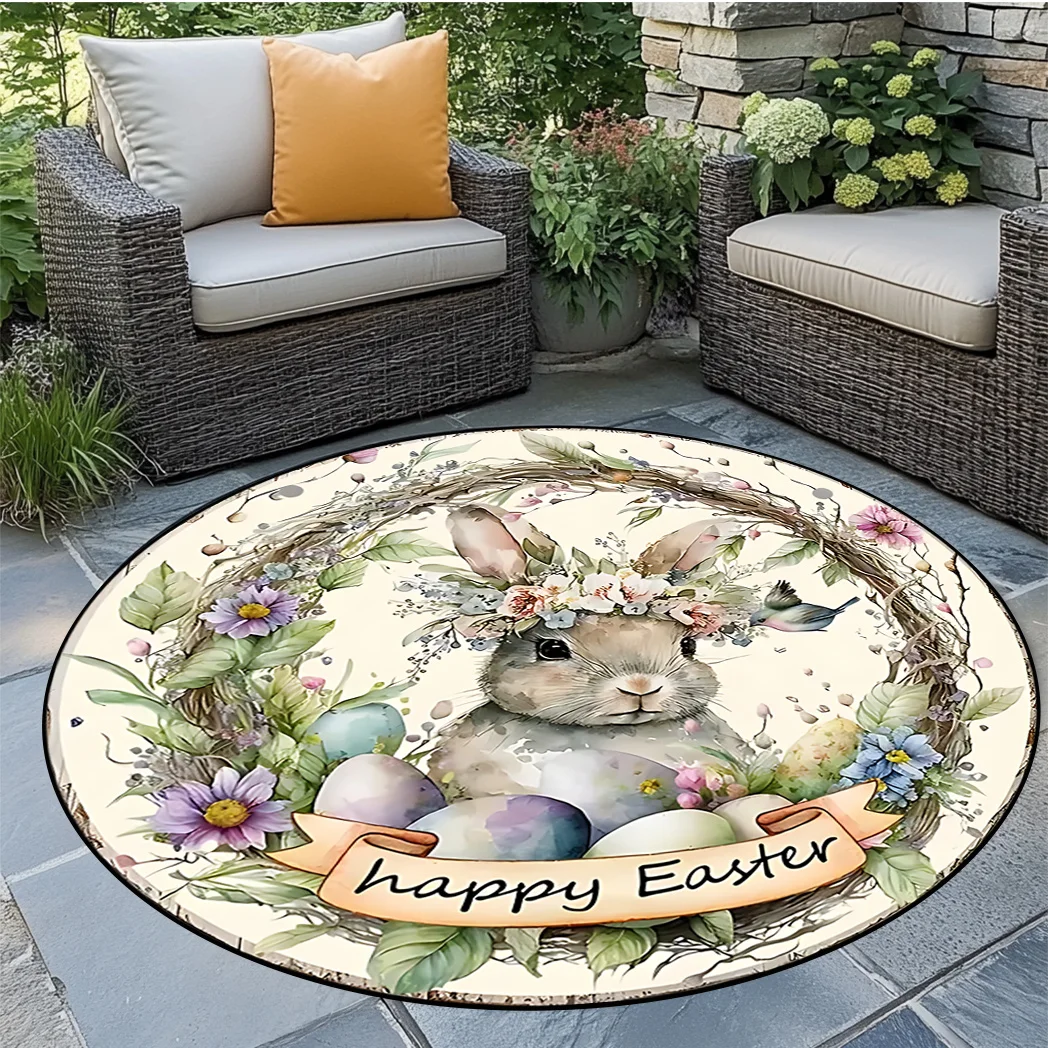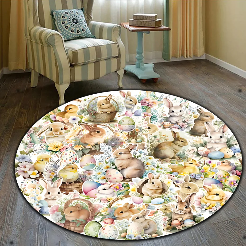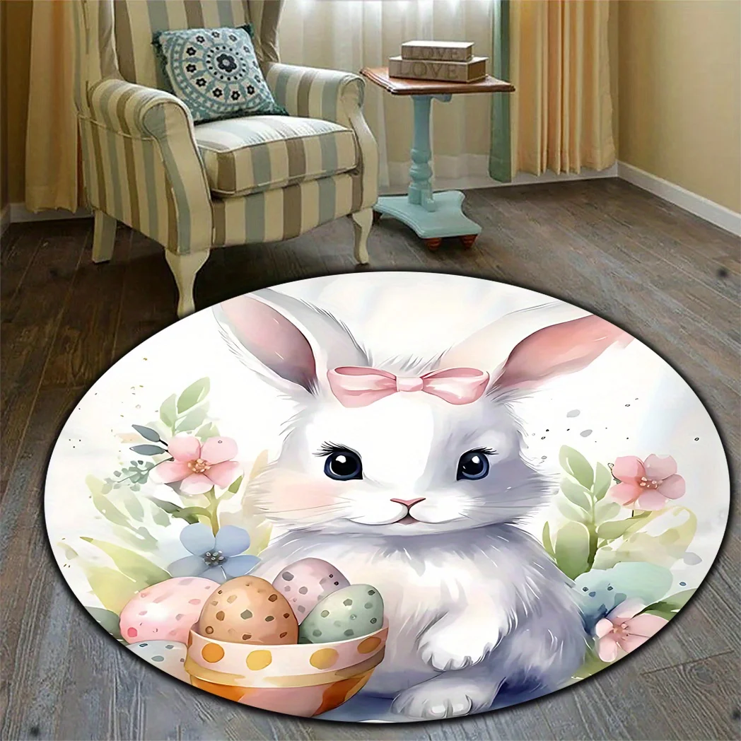 ARS-Easter Cute Rabbit Patterned Rug Round Area Rug Decoration Suitable for Living Room Bedroom Office Game Room Children Gift
