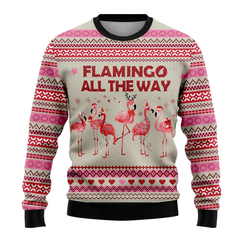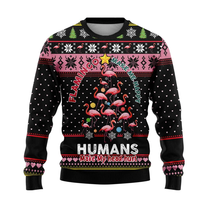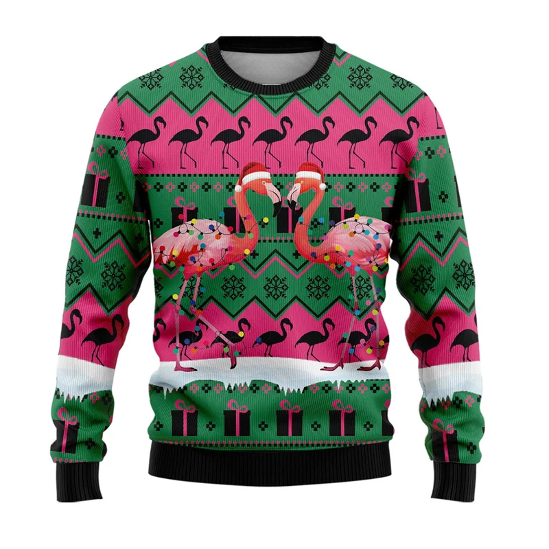 ARS-Flamingo Christmas Sweater Men 3D Printed Flamingo Men Pullover Crewneck Sweatshirt Couple Long Sleeve Shirts Outwear Unisex Tops