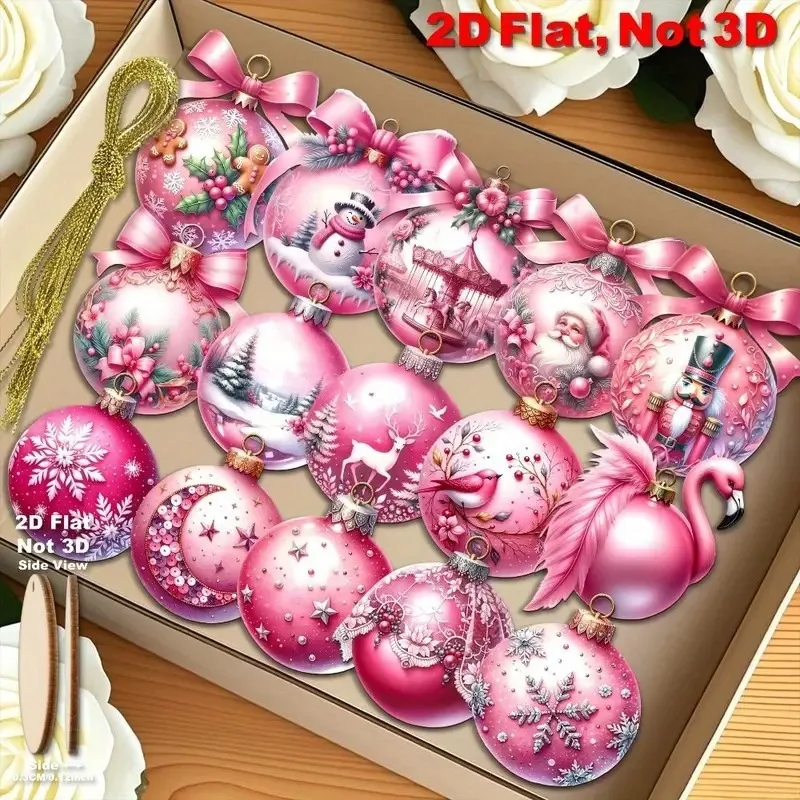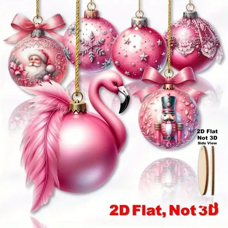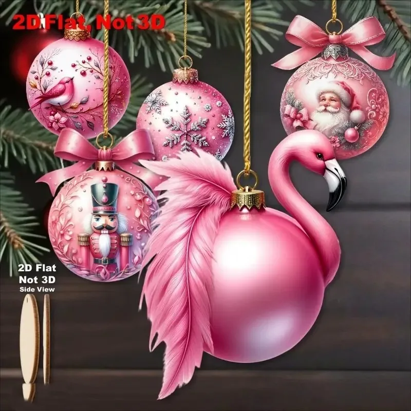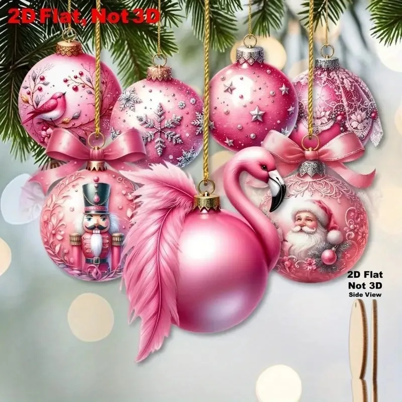 ARS-Wooden Pink Flamingo Christmas Ball Pendants Santa Claus Flamingo Elk Hangers Noel Merry Christmas Decor