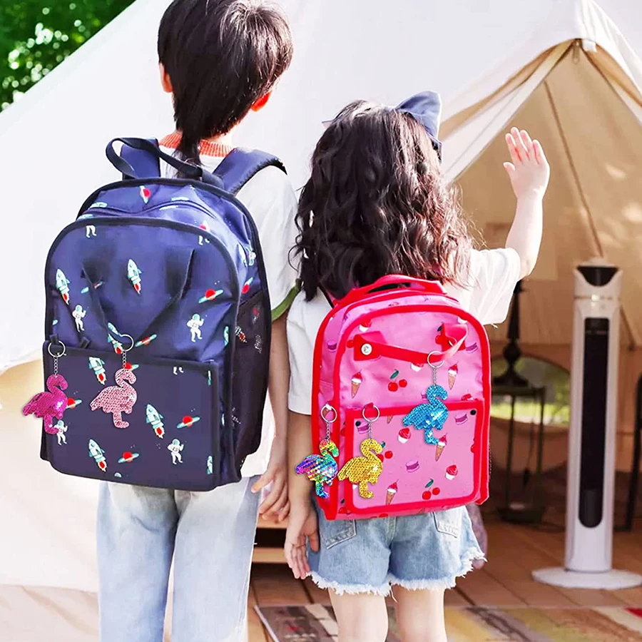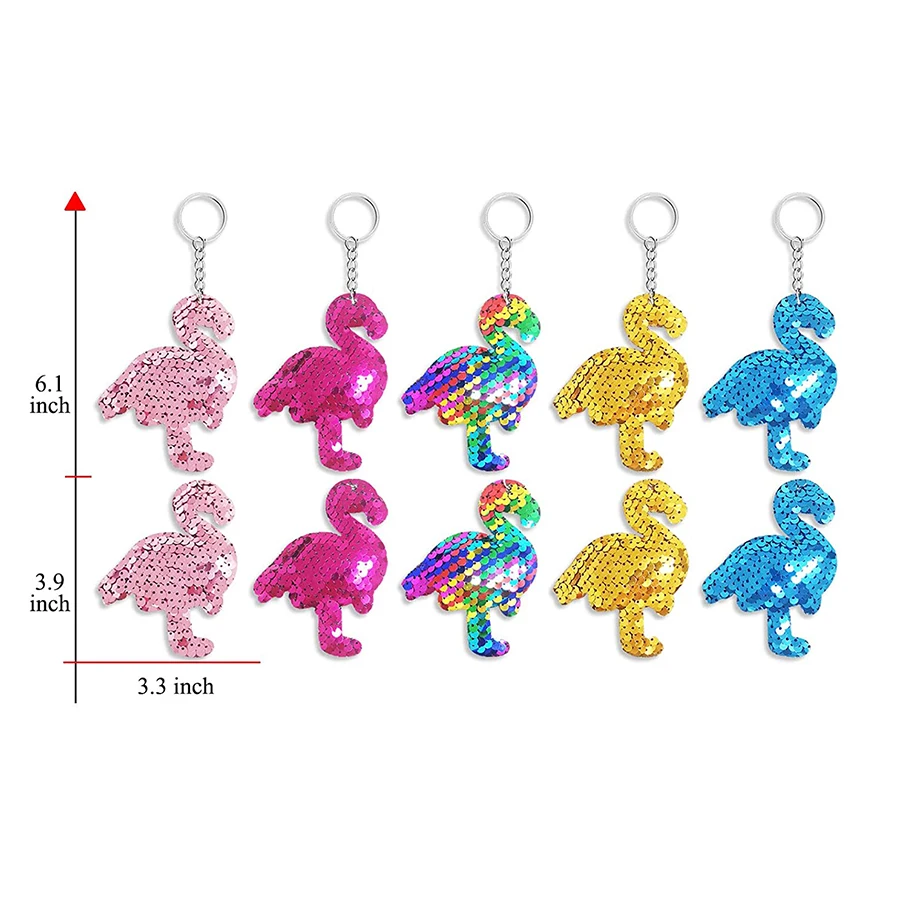 KR- 15PCS Flip Sequin Flamingo Keychains | Sparkly Reversible Key Rings for Kids & Adults | Cute Party Favors & Gifts