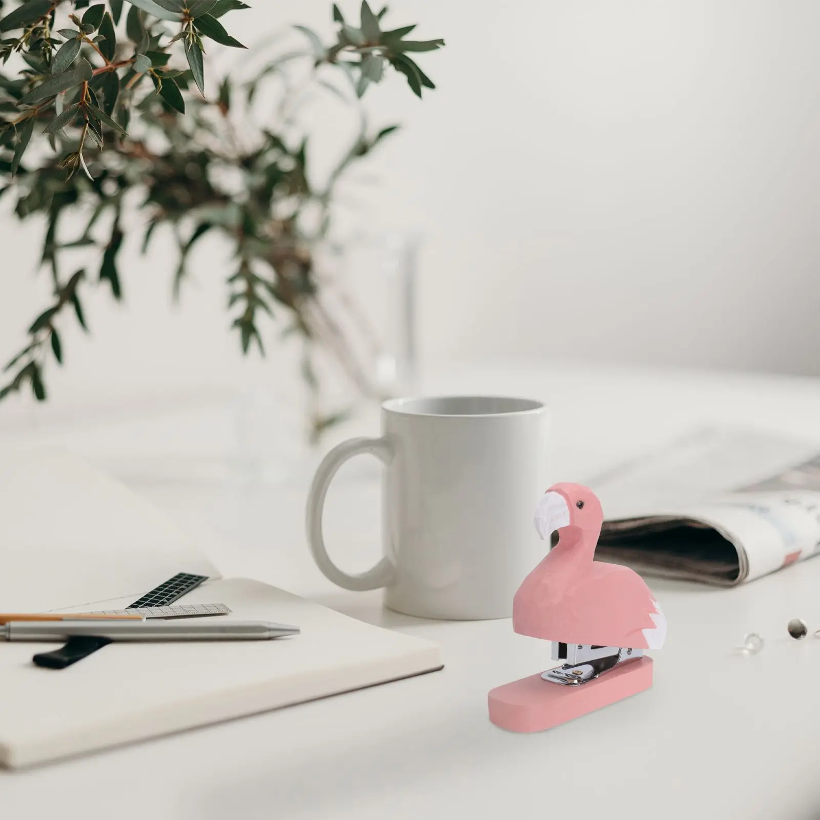 RS-Wooden Animal Stapler Mini Portable Bamboo Paper Flamingo Desk Accessories Student Stationery Office Supplies Lightweight