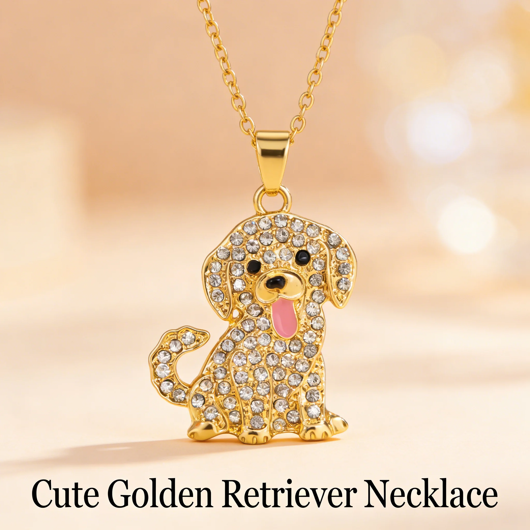 JR26A-Cute Golden Retriever Pendant Necklace for Dog Lovers Gift